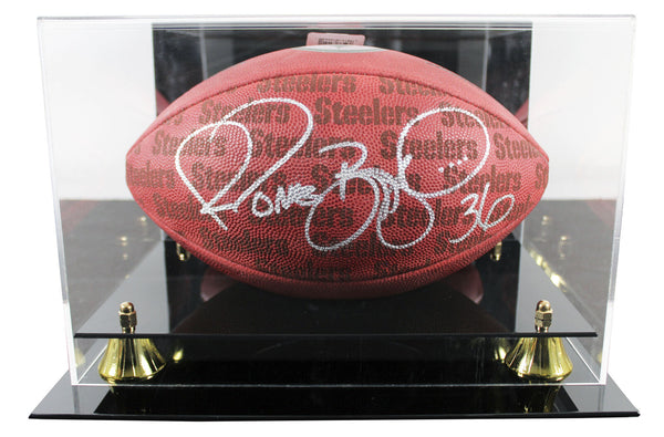 This Autographed Official Wilson "The Duke" Team Showcase Football W/ Uv Mirrored Back Acrylic Display Case has been Personally Signed by Jerome Bettis of the Pittsburgh Steelers. This item is 100% Authentic to include a hologram by Beckett Authentication Services. This item will come with an affixed Beckett Authentication Services (BAS) authentication sticker, which includes a scannable QR code to verify authenticity. Please note that Beckett no longer provides serial-numbered COA cards, and the attached BAS sticker will serve as the complete authentication for this item. This is a BAS Witnessed Protection Program item which means a Beckett Authentication Service representative was present when this item was being signed. We conducted an autograph signing with Jerome Bettis where multiples of the same item were signed. While the photographs are representative of this item, the size, placement and strength of the signature may vary. Each item is hand signed, therefore, each autograph is unique. This item can be verified through BAS Witnessed.