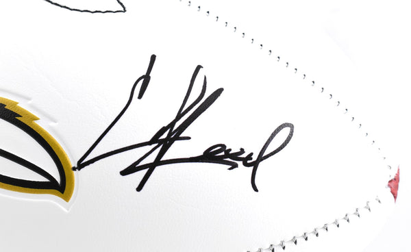 This is a hand autographed Football of Ray Lewis, Terrell Suggs and Ed Reed of the Baltimore Ravens. This is a Baltimore Ravens Franklin Logo Football. This item has a Beckett Witnessed Authentication, which comes with a numbered hologram and a QR code for verification. You can view this item on the Beckett website, it shows when and where the item was signed. It was signed either at a public autograph appearance or a private signing. This is a stock photo of the item. Although you may not receive this exact item, the item you receive is virtually identical and brand new in great shape. This is a hand autographed Football of Ray Lewis, Terrell Suggs and Ed Reed of the Baltimore Ravens. This is a Baltimore Ravens Franklin Logo Football. This item has a Beckett Witnessed Authentication, which comes with a numbered hologram and a QR code for verification. You can view this item on the Beckett website, it shows when and where the item was signed. It was signed either at a public autograph appearance or a private signing. This is a stock photo of the item. Although you may not receive this exact item, the item you receive is virtually identical and brand new in great shape.