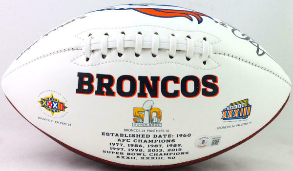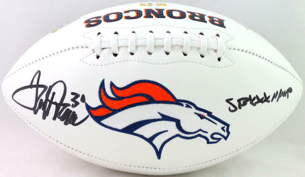 Terrell Davis Autographed Denver Broncos Logo Football w/ SB MVP- Beckett W *Blk This is a Terrell Davis of the Denver Broncos hand autographed logo football inscribed with "SB MVP". This item has a Beckett Witnessed Authentication, which comes with a numbered and a matching Certificate of Authenticity. You can view this item on the Beckett website and it shows when and where the item was signed. It was signed either at a public autograph appearance or a private signing. This is a stock photo of the item. Although you may not receive this exact item, the item you receive is virtually identical, brand new, and in great shape.
