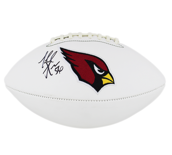 An Arizona Cardinals Embroidered Football hand signed by Terrell Suggs. The item and signature are in excellent condition. Terrell Suggs is an American football outside linebacker for the Arizona Cardinals of the National Football League. He played college football at Arizona State, and was recognized as a unanimous All-American. AUTHENTICATION: The item features a Certificate of Authenticity - Serial Numbered and Databased Hologram - Picture of Marlon from the Signing