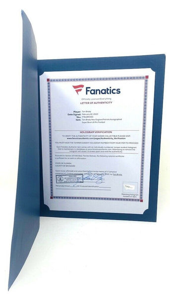 This official football has been personally hand-signed by Tom Brady. It is officially licensed by the National Football League and comes with an individually numbered, tamper-evident hologram from Fanatics Authentic. To ensure authenticity, the hologram can be reviewed online. This process helps to ensure that the product purchased is authentic and eliminates any possibility of duplication or fraud.