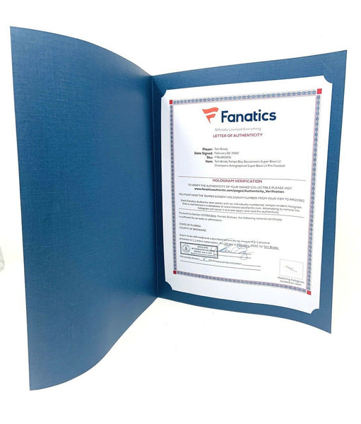 This official football has been personally hand-signed by tom brady. it is officially licensed by the national football league and comes with an individually numbered, tamper-evident hologram from fanatics authentic. to ensure authenticity, the hologram can be reviewed online. this process helps to ensure that the product purchased is authentic and eliminates any possibility of duplication or fraud.