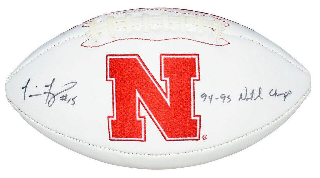 Tommie Frazier, former All-American quarterback for the Cornhuskers, has hand signed this Nebraska white panel logo football at a private signing. He included the inscription "94 95 Nat'l Champs" with his signature. This item comes with a certificate of authenticity (COA) from Signature Sports Marketing, one of the leaders in the industry. You will receive a paper COA along with matching serial-numbered holograms.Item pictured may not be the exact item you will receive. It will be similar quality, and we guarantee your satisfaction.
