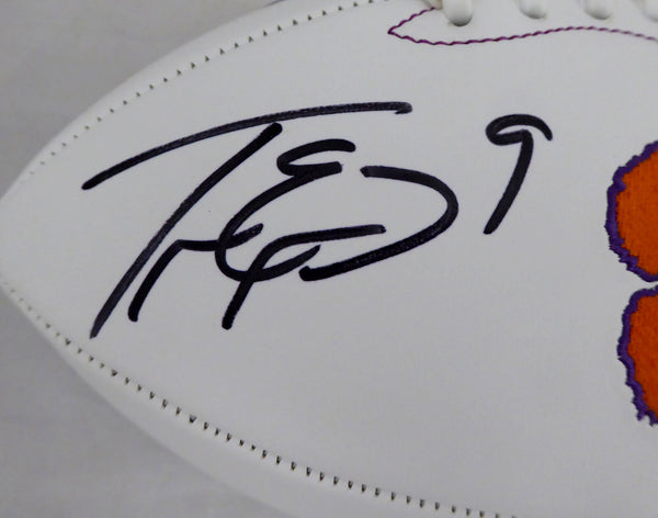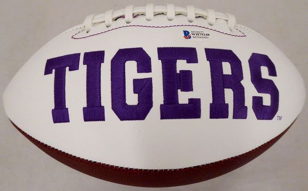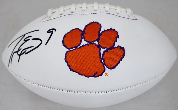 This is a Clemson Tigers White Logo Football that has been hand signed by Travis Etienne. This item has been certified authentic by Beckett Authentication (BAS) and comes with their tamper-proof sticker and matching certificate of authenticity.