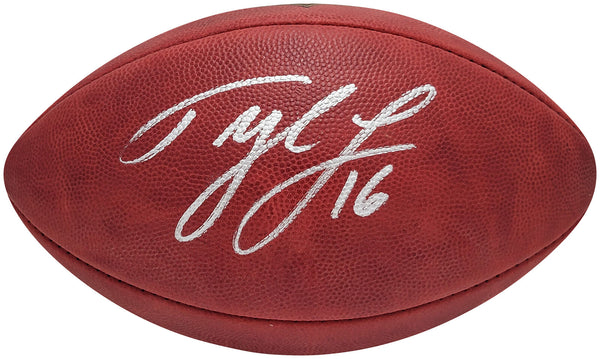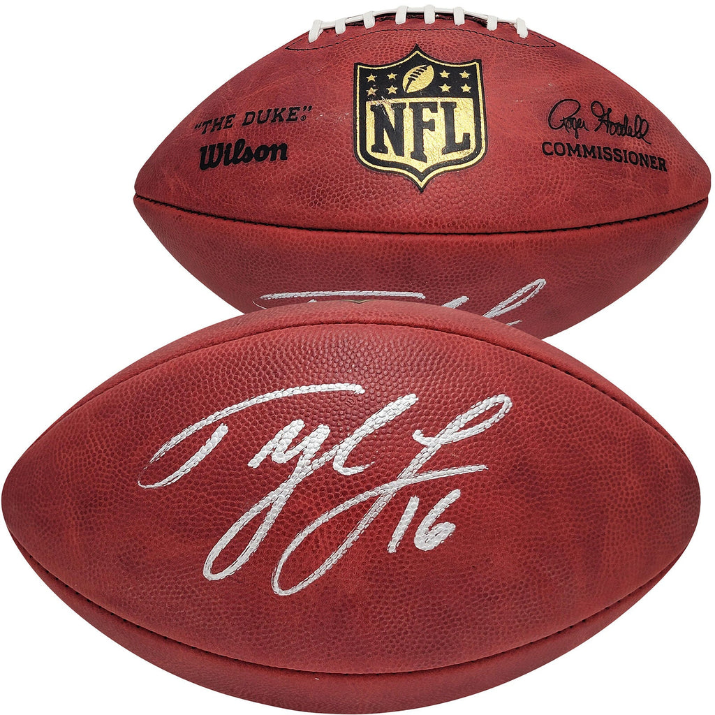 This is an Official NFL Leather Gold Shield Football that has been hand signed by Tyler Lockett. This item was signed in the presence of a Mill Creek Sports representative and comes with their serial numbered hologram and matching certificate of authenticity.