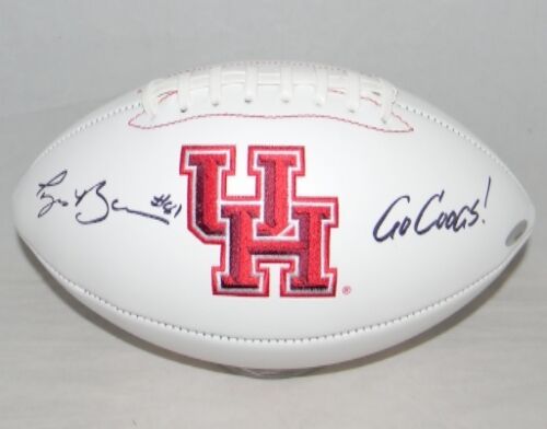 Tyus Bowser, former star linebacker for the Cougars, has hand signed this Houston white panel logo football at a private signing. This item comes with a serial-numbered hologram from Tristar, one of the leaders in the industry. The authenticity can be verified online by entering the serial number. A Tristar information card is also included.Item pictured may not be the exact item you will receive. It will be similar quality, and we guarantee your satisfaction.
