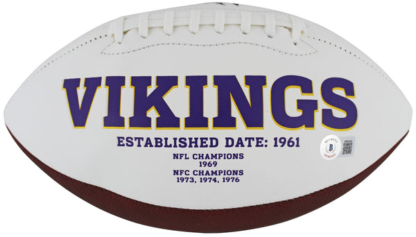 This Autographed Wilson White Panel Logo Football has been Personally Signed by Adrian Peterson of the Minnesota Vikings. This item is 100% Authentic to include a hologram by Beckett Authentication Services. This item will come with an affixed Beckett Authentication Services (BAS) authentication sticker, which includes a scannable QR code to verify authenticity. Please note that Beckett no longer provides serial-numbered COA cards, and the attached BAS sticker will serve as the complete authentication for this item. This is a BAS Witnessed Protection Program item which means a Beckett Authentication Service representative was present when this item was being signed. We conducted an autograph signing with Adrian Peterson where multiples of the same item were signed. While the photographs are representative of this item, the size, placement and strength of the signature may vary. Each item is hand signed, therefore, each autograph is unique. This item can be verified through BAS Witnessed.
