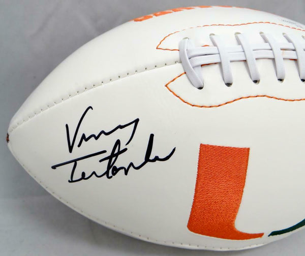 This is a hand autographed football of Vinny Testaverde. This is a Miami Hurricanes Logo football. This item has a James Spence Witness Authentication, which comes with a JSA numbered sticker and a matching JSA COA. You can view this item on the SpenceLOA website and it shows when and where the item was signed. It was signed either at a public autograph appearance or a Private Signing. This is a stock photo of the item. Although you may not receive this exact item, the item you receive is virtually identical and brand new in great shape. This is a hand autographed football of Vinny Testaverde. This is a Miami Hurricanes Logo football. This item has a James Spence Witness Authentication, which comes with a JSA numbered sticker and a matching JSA COA. You can view this item on the SpenceLOA website and it shows when and where the item was signed. It was signed either at a public autograph appearance or a Private Signing. This is a stock photo of the item. Although you may not receive this exact item, the item you receive is virtually identical and brand new in great shape.