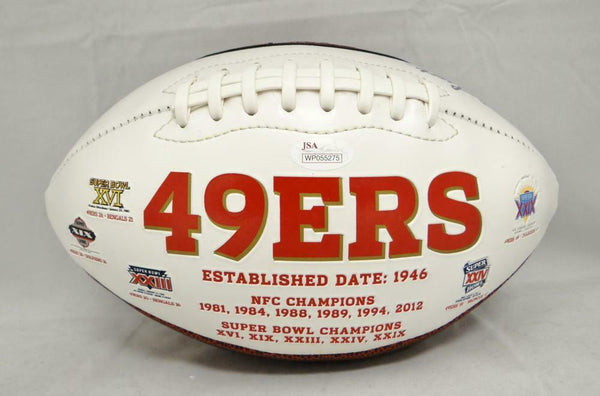 Y.A. Tittle Autographed San Francisco 49ers Logo Football With HOF- JSA W Auth This is a Hand Autographed Football of Y. A. Tittle. This is a San Francisco 49ers Logo Football. This item has a James Spence Witness Authentication, which Comes with a JSA #'ed sticker and matching JSA COA. You can view this item on the SpenceLOA website, it shows when and where the item was signed. It was signed either at a public autograph appearance or a Private Signing. This is a stock photo of the item. Although you may not receive this exact item, the item you receive is virtually identical and brand new in great shape.