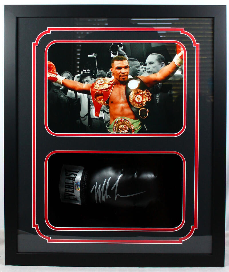 Mike Tyson Autographed Shadow Box Black Everlast Boxing Glove 2-Fiterman Holo *Silver *R This is a Hand Autographed Shadow Box Everlast Boxing Glove of Mike Tyson. This item has a Fiterman Authentication, which comes with a Fiterman Hologram. You can view this item on the Beckett website. It shows when and where the item was signed. It was signed either at a public autograph appearance or a private signing. This is a stock photo of the item. Although you may not receive this exact item, the item you receive is virtually identical and brand new in great shape.