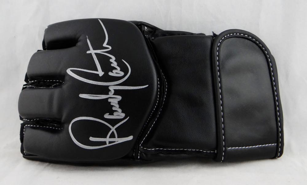 Randy Couture Autographed Century UFC Right Glove- Beckett Authenticated *Silver This is a Hand Autograph of Randy Couture on a Century UFC Glove. This item has a Beckett Authentication, which comes with a Beckett numbered and a matching Certificate Of Authenticity. You can view this item on the Beckett Authentication website. It was signed either at a public autograph appearance or a private signing. This is a stock photo of the item. The size of the glove may vary. Although you may not receive this exact item, the item you receive is virtually identical and brand new in great shape.
