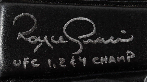 UFC glove is hand-signed and inscribed by UFC legend, Royce Gracie.Royce Gracie is considered by UFC fans to be the most influential figure in the history of modern MMA. Gracie gained fame for his success in the Ultimate Fighting Championship. Between 1993 and 1994, he was the tournament winner of UFC 1, UFC 2, and UFC 4. Gracie popularized Brazilian Jiu-Jitsu and revolutionized mixed martial arts with his results contributing to the movement towards grappling and ground fighting in the sport.He holds the most consecutive submission victories in UFC history with 11, which he earned between UFC 1 and UFC 4.The autograph includes an official Pristine Authentic hologram and matching COA for authenticity purposes.Authentication: Pristine Authentic COA