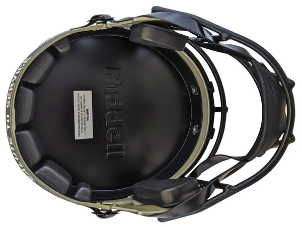 This Autographed Alternate Salute To Service Riddell Full Size Speed Rep Helmet has been Personally Signed by Deebo Samuel of the San Francisco 49ers. This item is 100% Authentic to includes a numbered hologram by Fanatics. We conducted an autograph signing with Deebo Samuel where multiples of the same item were signed. While the photographs are representative of this item, the size, placement and strength of the signature may vary. Each item is hand signed, therefore, each autograph is unique. This item can be verified through Fanatics.
