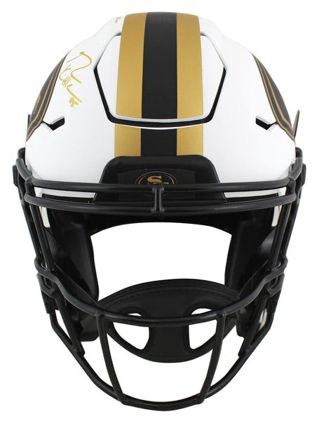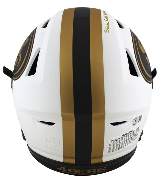 This Autographed Alternate Lunar Authentic Riddell Speed Flex Full Size Helmet with the inscription of "Stone Cold Kittle" has been Personally Signed by George Kittle of the San Francisco 49ers. This item is 100% Authentic to include a hologram by Beckett Authentication Services. This item will come with the new Beckett Authentication hologram that has a scannable QR code rather than the traditional COA. If you would like to have a COA, you are welcome to reach out to Beckett for a printed certification once you receive your item. This is a BAS Witnessed Protection Program item which means a Beckett Authentication Service representative was present when this item was being signed. This is a stock item. We conducted an autograph signing with George Kittle and we have several of these available. The one you will receive will be of equal quality to the one pictured. This item can be verified through BAS Witnessed.