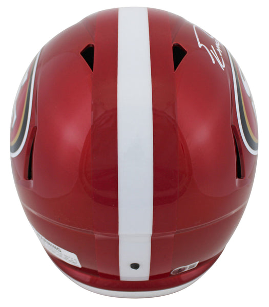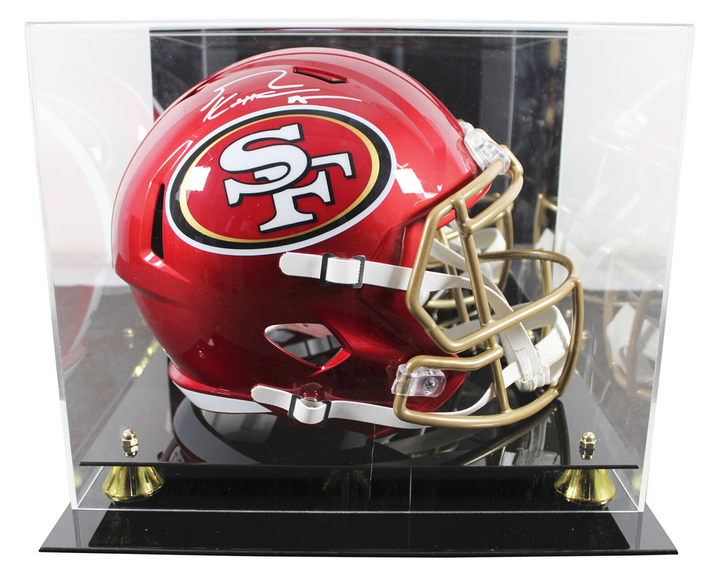 This Autographed Alternate Flash Riddell Full Size Speed Rep Helmet W/ Uv Mirrored Back Acrylic Display Case has been Personally Signed by George Kittle of the San Francisco 49ers. This item is 100% Authentic to include a hologram by Beckett Authentication Services. This item will come with an affixed Beckett Authentication Services (BAS) authentication sticker, which includes a scannable QR code to verify authenticity. Please note that Beckett no longer provides serial-numbered COA cards, and the attached BAS sticker will serve as the complete authentication for this item. This is a BAS Witnessed Protection Program item which means a Beckett Authentication Service representative was present when this item was being signed. We conducted an autograph signing with George Kittle where multiples of the same item were signed. While the photographs are representative of this item, the size, placement and strength of the signature may vary. Each item is hand signed, therefore, each autograph is unique. This item can be verified through BAS Witnessed.