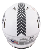 This Autographed Alternate Salute To Service III Riddell Authentic Full Size Speed Proline Helmet has been Personally Signed by George Kittle of the San Francisco 49ers. This item is 100% Authentic to include a hologram by Beckett Authentication Services. This item will come with an affixed Beckett Authentication Services (BAS) authentication sticker, which includes a scannable QR code to verify authenticity. Please note that Beckett no longer provides serial-numbered COA cards, and the attached BAS sticker will serve as the complete authentication for this item. This is a BAS Witnessed Protection Program item which means a Beckett Authentication Service representative was present when this item was being signed. We conducted an autograph signing with George Kittle where multiples of the same item were signed. While the photographs are representative of this item, the size, placement and strength of the signature may vary. Each item is hand signed, therefore, each autograph is unique. This item can be verified through BAS Witnessed.