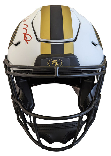 This Autographed Alternate Lunar Authentic Riddell Speed Flex Full Size Helmet has been Personally Signed by Joe Montana of the San Francisco 49ers. This item is 100% Authentic to includes a numbered hologram by Fanatics. We conducted an autograph signing with Joe Montana where multiples of the same item were signed. While the photographs are representative of this item, the size, placement and strength of the signature may vary. Each item is hand signed, therefore, each autograph is unique. This item can be verified through Fanatics.