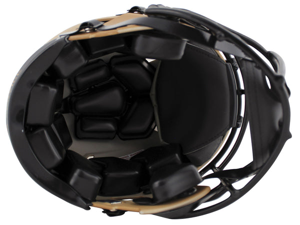 This Autographed Alternate 2023 Salute To Service II Riddell Authentic Full Size Speed Proline Helmet has been Personally Signed by Joe Montana of the San Francisco 49ers. This item is 100% Authentic to includes a numbered hologram by Fanatics. We conducted an autograph signing with Joe Montana where multiples of the same item were signed. While the photographs are representative of this item, the size, placement and strength of the signature may vary. Each item is hand signed, therefore, each autograph is unique. This item can be verified through Fanatics.