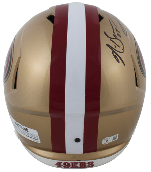 This Autographed Full Size Speed Rep Helmet with the inscription of "The Steam Rollers (Bowman)" has been Personally Signed by Patrick Willis & Navorro Bowman of the San Francisco 49ers. This item is 100% Authentic to include a hologram by Beckett Authentication Services. This item will come with an affixed Beckett Authentication Services (BAS) authentication sticker, which includes a scannable QR code to verify authenticity. Please note that Beckett no longer provides serial-numbered COA cards, and the attached BAS sticker will serve as the complete authentication for this item. This is a BAS Witnessed Protection Program item which means a Beckett Authentication Service representative was present when this item was being signed. We conducted an autograph signing with Patrick Willis & Navorro Bowman where multiples of the same item were signed. While the photographs are representative of this item, the size, placement and strength of the signature may vary. Each item is hand signed, therefore, each autograph is unique. This item can be verified through BAS Witnessed.