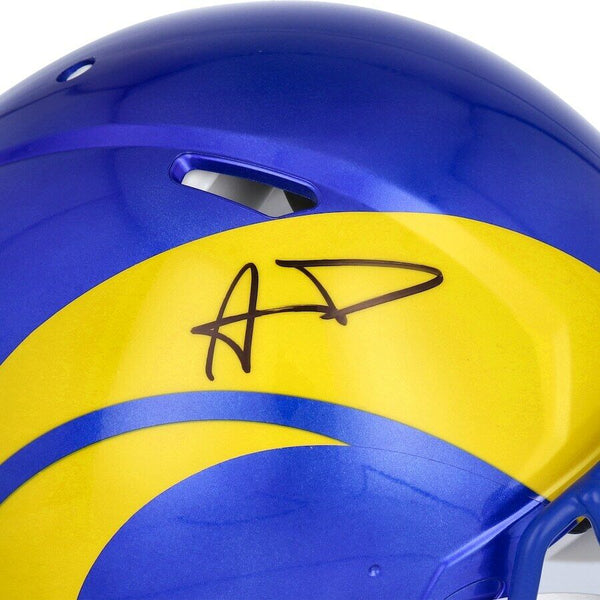 This authentic speed helmet has been personally hand-signed by aaron donald. this helmet also includes the official super bowl lvi logo on the non-signature side of the helmet. it is officially licensed by the national football league and comes with an individually numbered, tamper-evident hologram from fanatics authentic. to ensure authenticity, the hologram can be reviewed online. this process helps to ensure that the product purchased is authentic and eliminates any possibility of duplication or fraud.the autograph includes an official fanatics hologram and matching coa for authenticity purposes.comes with a tamper-evident hologram from fanatics authenticatedofficially licensed by the nfl money back guarantee! if for any reason you are not completely satisfied with the quality or authenticity of your purchase, we will gladly give you a full refund or exchange, whichever you prefer up to 30 days after purchase. please feel free to e-mail us with any questions. good luck bidding!!! authenticator pre-certified authenticator: fanatics authenticated history of item: aaron donald has signed this item in the presence of a representative from fanatics. describe how you came to possess this item: super sports center is a fully authorized dealer for upper deck authenticated as well as mounted memories and steiner sports. other information about you and / or the item: super sports center strives to deliver the most authentic in sports memorabilia from trusted companies like mounted memories, steiner sports and upper deck authenticated. if it exists, we can find it for you!