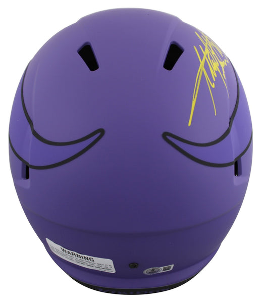This Autographed Alternate Rave Riddell Full Size Speed Rep Helmet W/ Uv Mirrored Back Acrylic Display Case with the inscription of ""All Damn Day"" has been Personally Signed by Adrian Peterson of the Minnesota Vikings. This item is 100% Authentic to include a hologram by Beckett Authentication Services. This item will come with an affixed Beckett Authentication Services (BAS) authentication sticker, which includes a scannable QR code to verify authenticity. Please note that Beckett no longer provides serial-numbered COA cards, and the attached BAS sticker will serve as the complete authentication for this item. This is a BAS Witnessed Protection Program item which means a Beckett Authentication Service representative was present when this item was being signed. We conducted an autograph signing with Adrian Peterson where multiples of the same item were signed. While the photographs are representative of this item, the size, placement and strength of the signature may vary. Each item is hand signed, therefore, each autograph is unique. This item can be verified through BAS Witnessed.