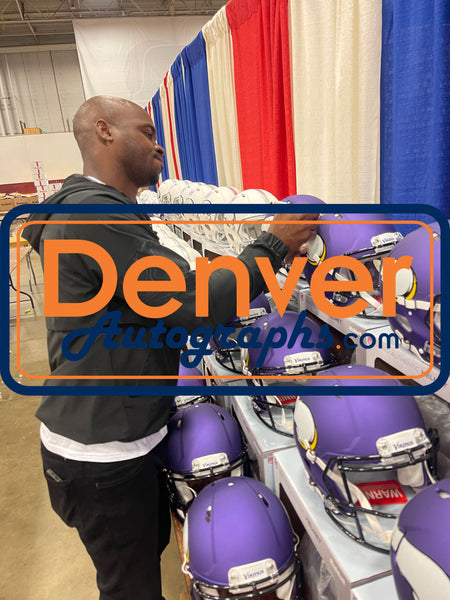 The number in the listing title is just an inventory sku for our records and is not the authentication number. This is a stock photo, unless otherwise noted. This is a Minnesota Vikings Full Size Authentic Helmet that was personally autographed by Adrian Peterson. Includes a certificate of authenticity from Beckett Authentication Services (BAS) and Denver Autographs.FREE SHIPPING within the USA on orders over $10!
