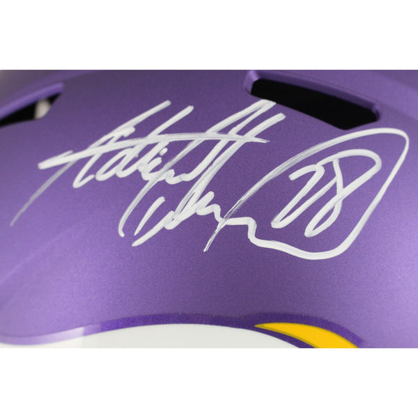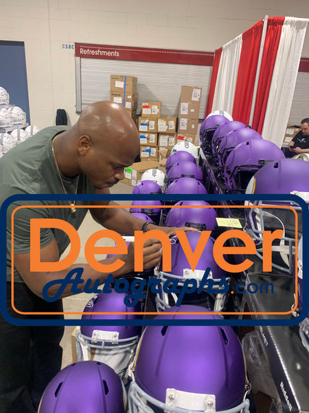The number in the listing title is just an inventory sku for our records and is not the authentication number. This is a stock photo, unless otherwise noted. This is a Minnesota Vikings Full Size Replica Tribute Helmet that was personally autographed by Adrian Peterson. Includes a certificate of authenticity from Beckett Authentication Services (BAS) and Denver Autographs.FREE SHIPPING within the USA on orders over $10!