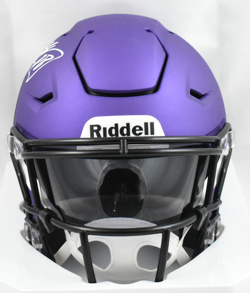 This is a Adrian Peterson of the Minnesota Vikings autographed Riddell football Mid-Size SpeedFlex helmet. This item has a Beckett Witnessed Authentication, which comes with a numbered hologram and a QR code for verification. You can view this item on the Beckett Authentication website, and it shows when and where the item was signed. It was signed either at a public autograph appearance or a private signing. This is a stock photo of the item. Although you may not receive this exact item, the item you receive is virtually identical, brand new, and in great shape. *Autograph location may vary* This is a Adrian Peterson of the Minnesota Vikings autographed Riddell football Mid-Size SpeedFlex helmet. This item has a Beckett Witnessed Authentication, which comes with a numbered hologram and a QR code for verification. You can view this item on the Beckett Authentication website, and it shows when and where the item was signed. It was signed either at a public autograph appearance or a private signing. This is a stock photo of the item. Although you may not receive this exact item, the item you receive is virtually identical, brand new, and in great shape. *Autograph location may vary*