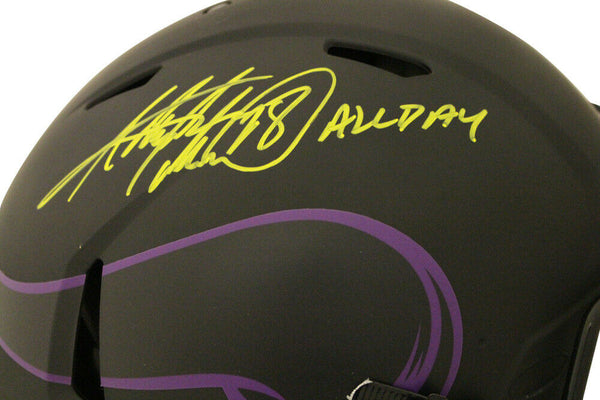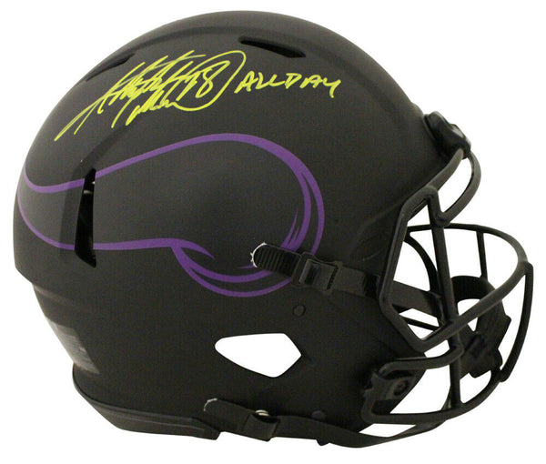 Adrian Peterson Signed Minnesota Vikings Authentic Eclipse Helmet BAS 27747 This is a Minnesota Vikings full size authentic/proline Eclipse helmet that was personally autographed by Adrian Peterson with All Day inscription. This helmet includes a certificate of authenticity from Beckett Authentication Services (BAS) and Denver Autographs. The number in the listing title is just an inventory sku for our records and is not the authentication number.