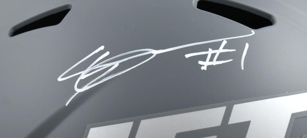 Ahmad Sauce Gardner Autographed New York Jets F/S Slate Speed Helmet- Beckett W Hologram *White This is a Ahmad Sauce Gardner of the New York Jets hand autographed Riddell Full Size Slate Speed Replica Helmet. This item has a Beckett Witnessed Authentication, which comes with a numbered hologram and a QR code for authentication. You can view this item on the Beckett Authentication website. It was signed either at a public autograph appearance or a private signing. This is a stock photo of the item. Although you may not receive this exact item, the item you receive is virtually identical, brand new, and in great shape.