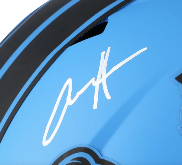 This full size replica speed helmet has been personally hand-signed by Aidan Hutchinson. It is officially licensed by the National Football League and comes with an individually numbered, tamper-evident hologram from Fanatics Authentic. To ensure authenticity, the hologram can be reviewed online. This process helps to ensure that the product purchased is authentic and eliminates any possibility of duplication or fraud. MONEY BACK GUARANTEE! If for any reason you are not completely satisfied with the quality or authenticity of your purchase, we will gladly give you a full refund or exchange, whichever you prefer up to 30 days after purchase. Please feel free to e-mail us with any questions. Thank you. Authenticator Pre-Certified Authenticator: Fanatics Authenticated History of item: This item has signed this item in the presence of a representative from Fanatics Authenticated. Describe how you came to possess this item: Super Sports Center is a fully authorized dealer for Upper Deck Authenticated as well as Mounted Memories and Steiner Sports. Other information about you and / or the item: Super Sports Center strives to deliver the most authentic in sports memorabilia from trusted companies like Mounted Memories, Steiner Sports and Upper Deck Authenticated. If it exists, we can find it for you!