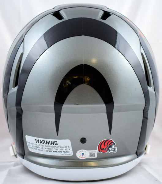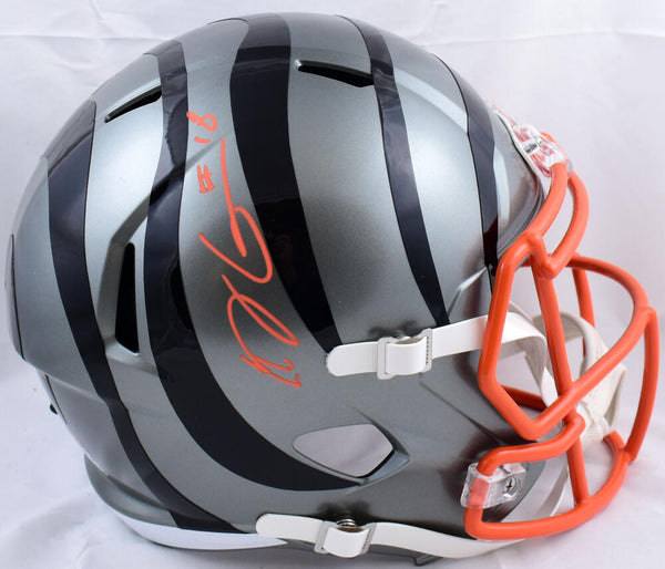 AJ Green Autographed Cincinnati Bengals F/S Flash Speed Helmet-Beckett W Hologram *Orange This is an AJ Green of the Cincinnati Bengals hand autographed Riddell Football Full Size Flash Speed Replica Helmet. This item has a Beckett Witnessed Authentication, which comes with a numbered sticker hologram and a QR code for verification. You can view this item on the Beckett website and it shows when and where the item was signed. It was signed either at a public autograph appearance or a private signing. This is a stock photo of the item. Although you may not receive this exact item, the item you receive is virtually identical, brand new, and in great shape.