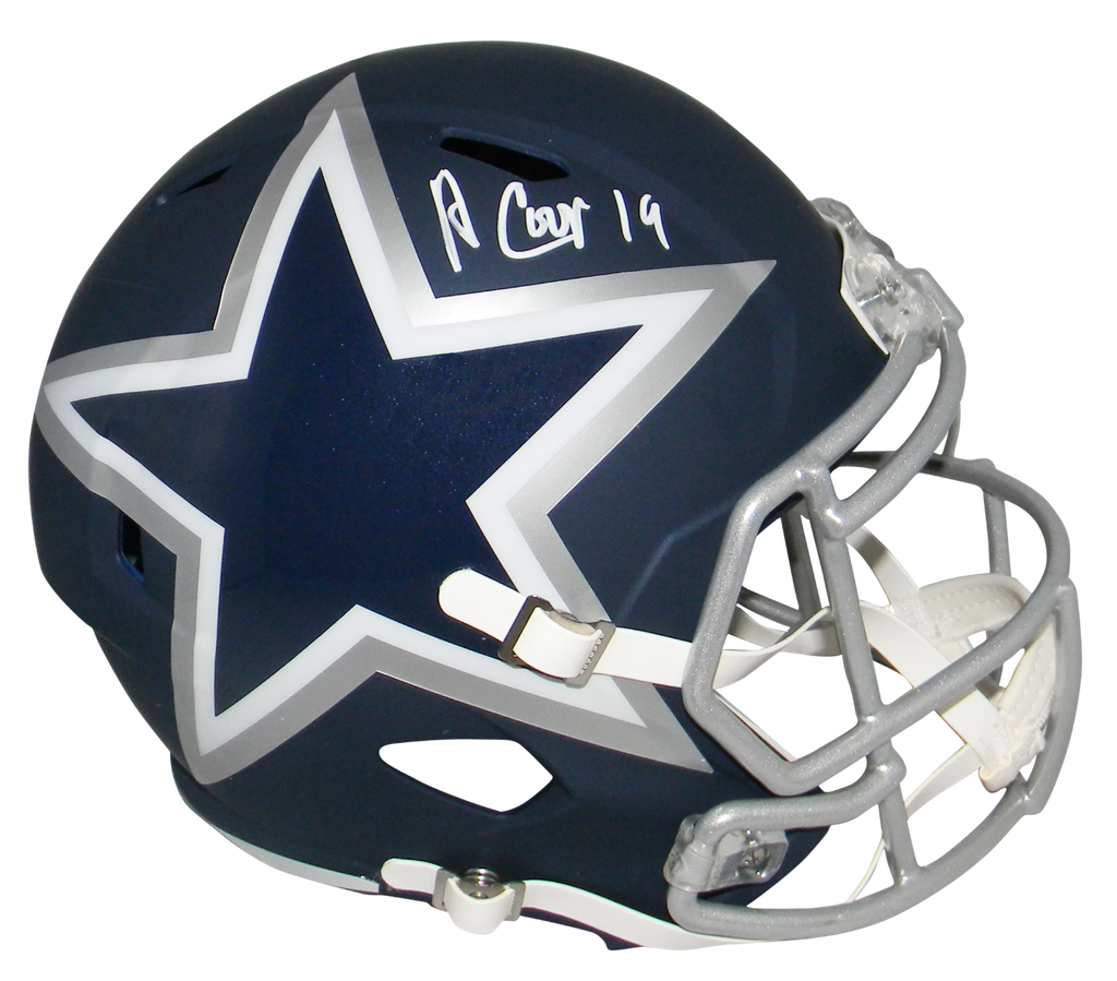 Amari Cooper, former wide receiver for the Dallas Cowboys, has hand signed this Cowboys Riddell Speed AMP full-size replica helmet at a private signing. This item comes with a certificate of authenticity (COA) from JSA - James Spence Authentication and was signed in the presence of one of their representatives. You will receive a serial-numbered COA along with a matching serial-numbered sticker on the helmet. The authenticity can be verified online by entering the serial number.Item pictured may not be the exact item you will receive. It will be similar quality, and we guarantee your satisfaction.