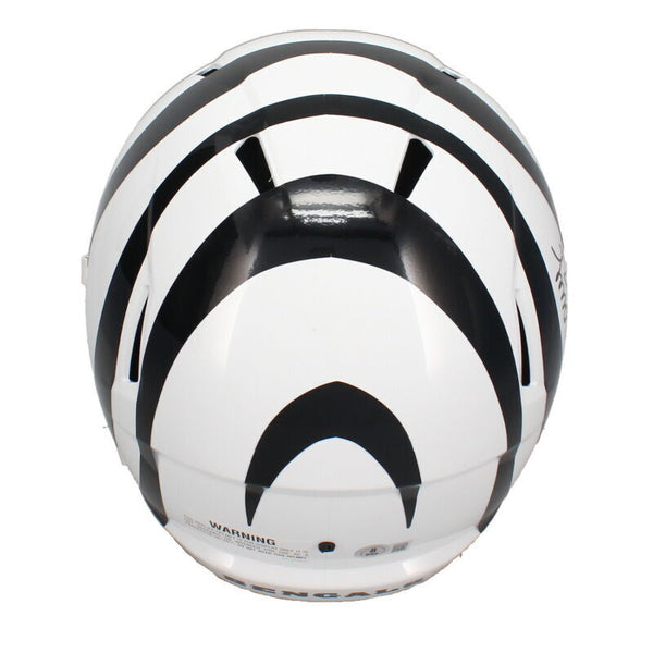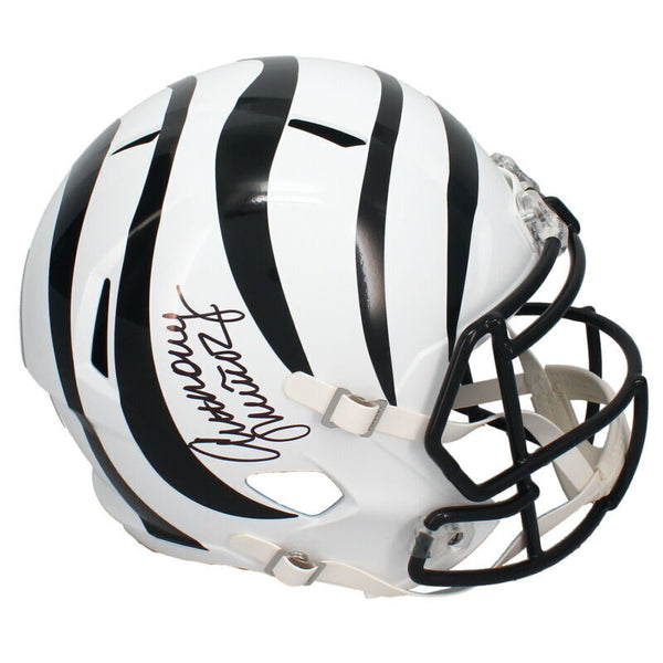 This bengals full size replica riddell speed helmet has been personally hand-signed by anthony munoz. it comes with an individually numbered, tamper-evident hologram from beckett authentic. to ensure authenticity, the hologram can be reviewed online. this process helps to ensure that the product purchased is authentic and eliminates any possibility of duplication or fraud.