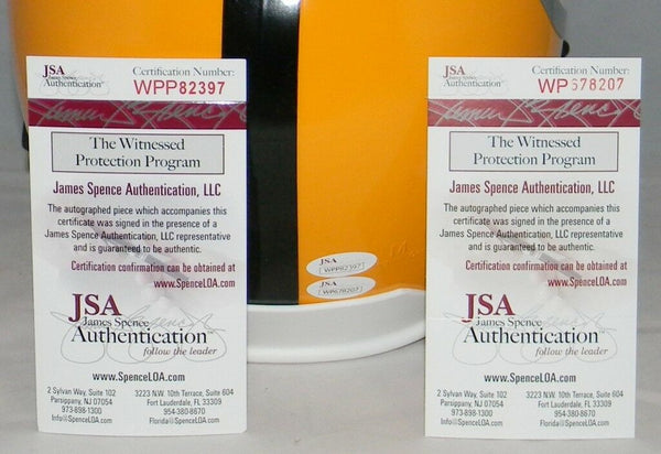 Antonio Brown and Le'veon Bell have each hand signed this Steelers Riddell full-size replica helmet at a private signing. This item comes with a certificate of authenticity (COA) from JSA - James Spence Authentication and was signed in the presence of one of their representatives. You will receive a serial-numbered COA along with a matching serial-numbered sticker on the helmet. The authenticity can be verified online by entering the serial number.Item pictured may not be the exact item you will receive. It will be similar quality, and we guarantee your satisfaction.