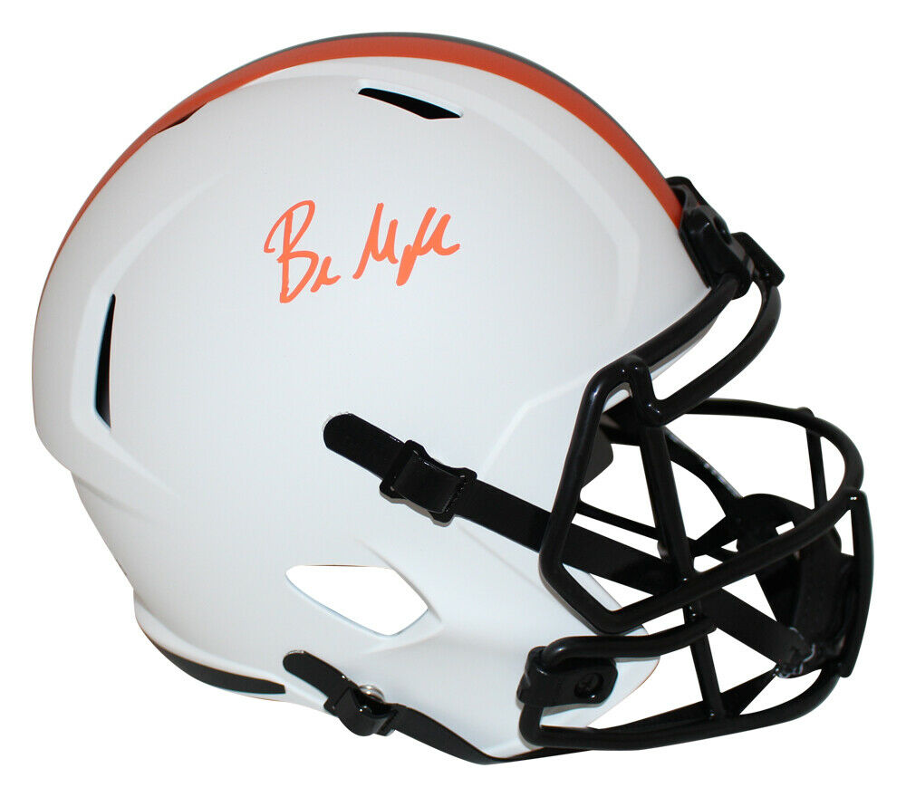 Baker Mayfield Autographed Cleveland Browns F/S Lunar Speed Helmet BAS 32426 The number in the listing title is just an inventory sku for our records and is not the authentication number. This is a Cleveland Browns full size Lunar speed replica helmet that was personally autographed by Baker Mayfield. Includes a certificate of authenticity from Beckett Authentication Services (BAS) and Denver Autographs.