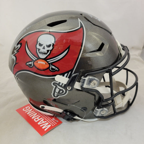 BAKER MAYFIELD AUTOGRAPHED TAMPA BAY HELMET FULL SIZE SPEEDFLEX AUTHENTIC HELMETBECKETT WITNESSED QR COATHIS MEANS THE HELMET WAS SIGNED WITH A BECKETT REPRESENTATIVE PRESENT SO YOU CAN BE 100% CERTAIN ITS THE REAL THING.