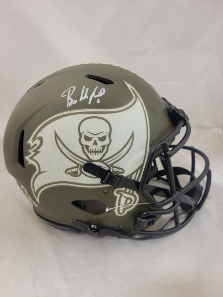 BAKER MAYFIELD AUTOGRAPHED TAMPA BAY HELMET FULL SIZE SALUTE TO SERVICE (STS) SPEED AUTHENTIC HELMETBECKETT WITNESSED QR COATHIS MEANS THE HELMET WAS SIGNED WITH A BECKETT REPRESENTATIVE PRESENT SO YOU CAN BE 100% CERTAIN ITS THE REAL THING.