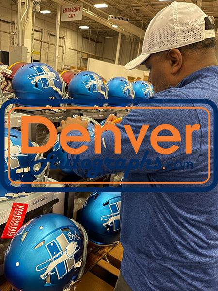 The number in the listing title is just an inventory sku for our records and is not the authentication number. The item pictured is a stock photo unless otherwise noted. This is a Detroit Lions Full Size 2023 Alternate Speed Replica Helmet that was personally autographed by Barry Sanders. Includes a certificate of authenticity from Beckett Authentication Services (BAS) and Denver Autographs.