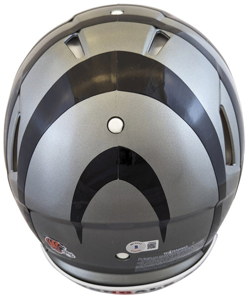 This Autographed Alternate Flash Riddell Authentic Full Size Speed Proline Helmet has been Personally Signed by Tee Higgins of the Cincinnati Bengals. This item is 100% Authentic to include a hologram by Beckett Authentication Services. This item will come with an affixed Beckett Authentication Services (BAS) authentication sticker, which includes a scannable QR code to verify authenticity. Please note that Beckett no longer provides serial-numbered COA cards, and the attached BAS sticker will serve as the complete authentication for this item. This is a BAS Witnessed Protection Program item which means a Beckett Authentication Service representative was present when this item was being signed. We conducted an autograph signing with Tee Higgins where multiples of the same item were signed. While the photographs are representative of this item, the size, placement and strength of the signature may vary. Each item is hand signed, therefore, each autograph is unique. This item can be verified through BAS Witnessed.