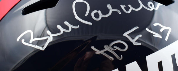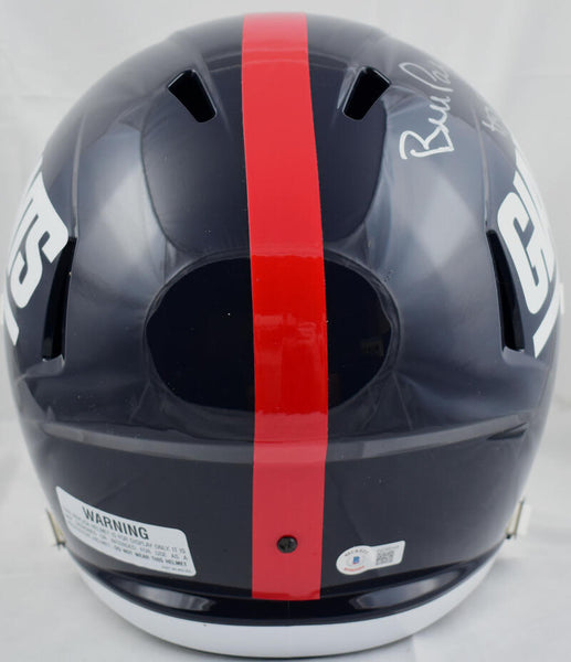 Bill Parcells Lawrence Taylor Signed Giants F/S 81-99 Speed Helmet w/HOF-Beckett W Hologram *Silver This is a hand autographed Helmet of Bill Parcells and Lawrence Taylor of the New York Giants. This is a Riddell Football Full Size 81-99 Speed Replica Helmet. Inscribed HOF. This item has a Beckett Witnessed Authentication, which comes with a numbered sticker hologram and a QR code for verification. You can view this item on the Beckett Authentication website and it shows when and where the item was signed. It was signed either at a public autograph appearance or a private signing. This is a stock photo of the item. Although you may not receive this exact item, the item you receive is virtually identical and brand new in great shape.