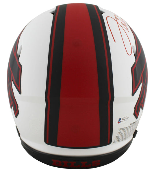 This Autographed Alternate Lunar Riddell Authentic Full Size Speed Proline Helmet has been Personally Signed by Josh Allen of the Buffalo Bills. This item is 100% Authentic to include a Certificate of Authenticity (COA) / hologram by Beckett Authentication Services. This is a BAS Witnessed Protection Program item which means a Beckett Authentication Service representative was present when this item was being signed. This is a stock item. We conducted an autograph signing with Josh Allen and we have several of these available. The one you will receive will be of equal quality to the one pictured. This item can be verified through BAS Witnessed.