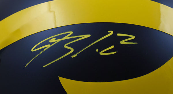 This is a hand autograph of Blake Corum of the Michigan Wolverines on a Riddell Football Full Size Speed Replica Helmet. This item has a Becket Witnessed Authentication, which comes with a numbered hologram and a QR code for verification. You can view this item on the Beckett Authentication website. It was signed either at a public autograph appearance or a private signing. This is a stock photo of the item. Although you may not receive this exact item, the item you receive is virtually identical and brand new in great shape. This is a hand autograph of Blake Corum of the Michigan Wolverines on a Riddell Football Full Size Speed Replica Helmet. This item has a Becket Witnessed Authentication, which comes with a numbered hologram and a QR code for verification. You can view this item on the Beckett Authentication website. It was signed either at a public autograph appearance or a private signing. This is a stock photo of the item. Although you may not receive this exact item, the item you receive is virtually identical and brand new in great shape.