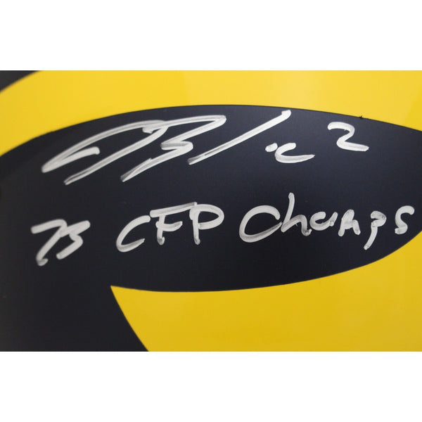 The number in the listing title is just an inventory sku for our records and is not the authentication number. The item pictured is a stock photo unless otherwise noted. This is a Michigan Wolverines Full Size Authentic Helmet that was personally autographed by Blake Corum with "24 Champs" inscription. Includes a certificate of authenticity from Beckett Grading Services (BAS) and Denver Autographs.FREE SHIPPING within the USA on orders over $10!