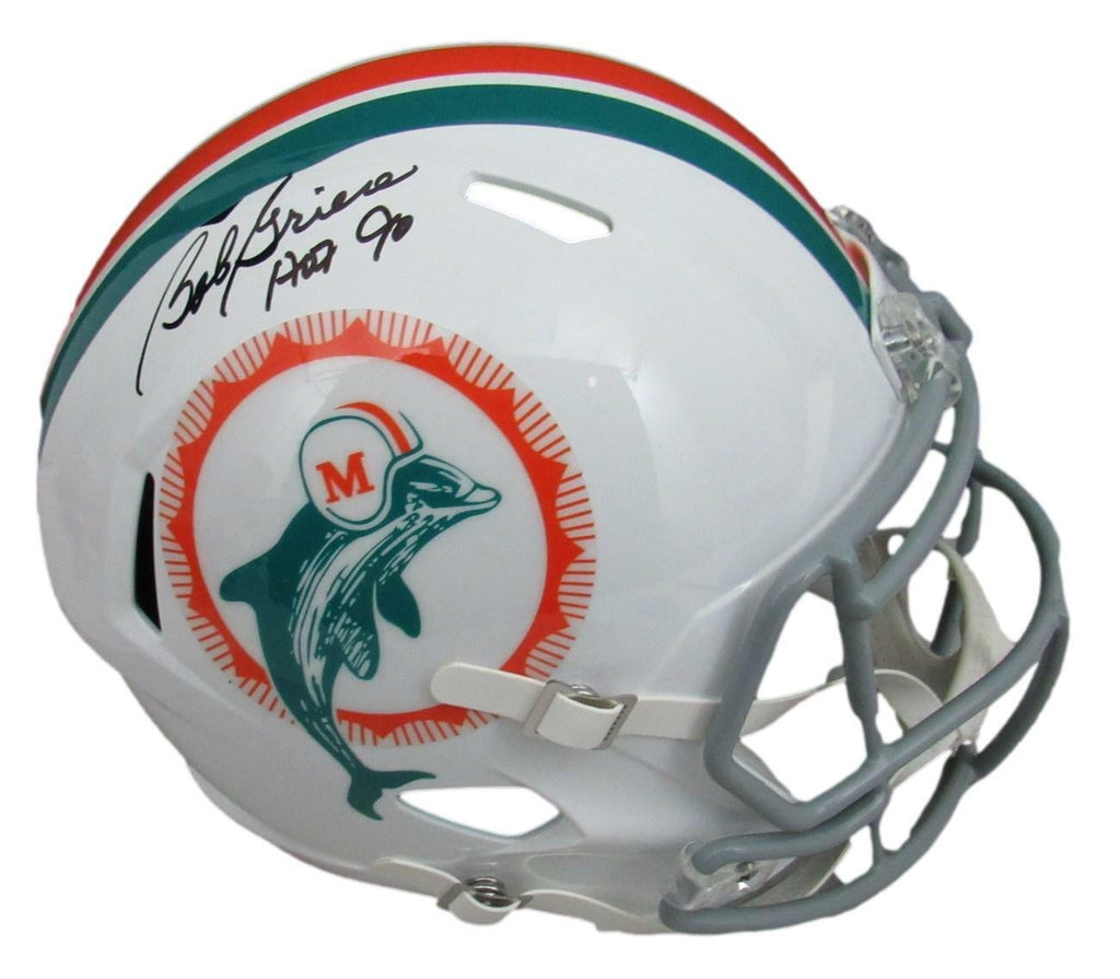Bob Griese HOF Signed/Inscribed "HOF 90" Miami Dolphins Speed 1972 Throw Back White Full Size Replica Football Helmet. This helmet is authenticated by BAS/Beckett and includes their Tamper-proof Hologram Sticker and Certificate of Authenticity.