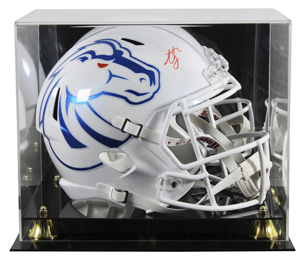 This Autographed White Full Size Speed Rep Helmet W/ Uv Mirrored Back Acrylic Display Case has been Personally Signed by Ashton Jeanty of the Boise State Broncos. This item is 100% Authentic to include a hologram by Beckett Authentication Services. This item will come with an affixed Beckett Authentication Services (BAS) authentication sticker, which includes a scannable QR code to verify authenticity. Please note that Beckett no longer provides serial-numbered COA cards, and the attached BAS sticker will serve as the complete authentication for this item. This is a BAS Witnessed Protection Program item which means a Beckett Authentication Service representative was present when this item was being signed. We conducted an autograph signing with Ashton Jeanty where multiples of the same item were signed. While the photographs are representative of this item, the size, placement and strength of the signature may vary. Each item is hand signed, therefore, each autograph is unique. This item can be verified through BAS Witnessed.