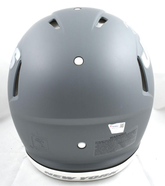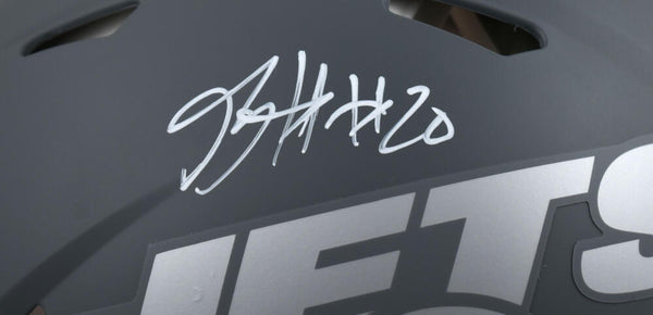 Breece Hall Autographed New York Jets F/S Slate Speed Authentic Helmet- Fanatics *White This is a Breece Hall of the New York Jets hand autographed Riddell Full Size Slate Speed Authentic Helmet. This item has a Fanatics Authentication, which comes with a numbered sticker hologram and a QR code for authentication. You can view this item on the Fanatics Authentication website. It was signed either at a public autograph appearance or a private signing. This is a stock photo of the item. Although you may not receive this exact item, the item you receive is virtually identical, brand new, and in great shape.