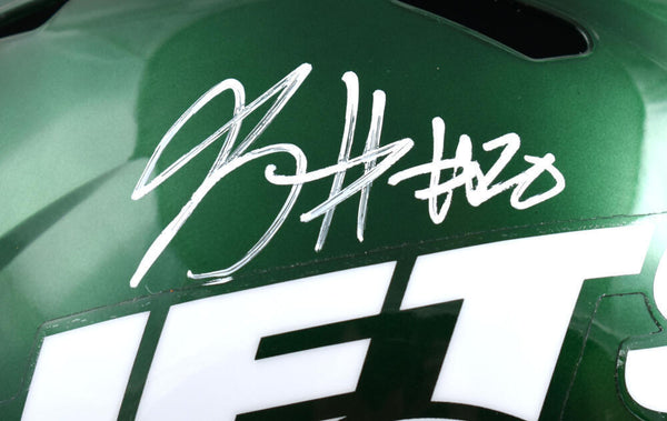 Breece Hall Autographed New York Jets F/S Speed Helmet- Fanatics *White This is a Breece Hall of the New York Jets hand autographed Riddell Full Size Speed Replica Helmet. This item has a Fanatics Authentication, which comes with a numbered sticker hologram and a QR code for authentication. You can view this item on the Fanatics Authentication website. It was signed either at a public autograph appearance or a private signing. This is a stock photo of the item. Although you may not receive this exact item, the item you receive is virtually identical, brand new, and in great shape.
