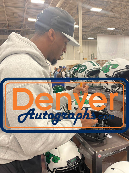 The number in the listing title is just an inventory sku for our records and is not the authentication number. The item pictured is a stock photo unless otherwise noted. This is a New York Jets Full Size Lunar Speed Replica Helmet that was personally autographed by Breece Hall. Includes a certificate of authenticity from Fanatics Authentics (FAN) and Denver Autographs.