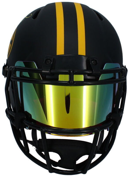 Brett Favre Autographed Green Bay Packers GDL/FSM Custom Painted Black/Yellow Speed Authentic Helmet Beckett WitnessedThis Green Bay Packers Custom FSM Painted speed helmet has been personally hand-signed by Brett Favre. It comes with an individually numbered, tamper-evident hologram from Radtke Authentic as well as Beckett. To ensure authenticity, the hologram can be reviewed online. This process helps to ensure that the product purchased is authentic and eliminates any possibility of duplication or fraud.